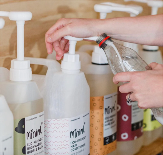 Once our large containers are empty they are returned to Miniml for cleaning and then refilled making it a truly circular product range.