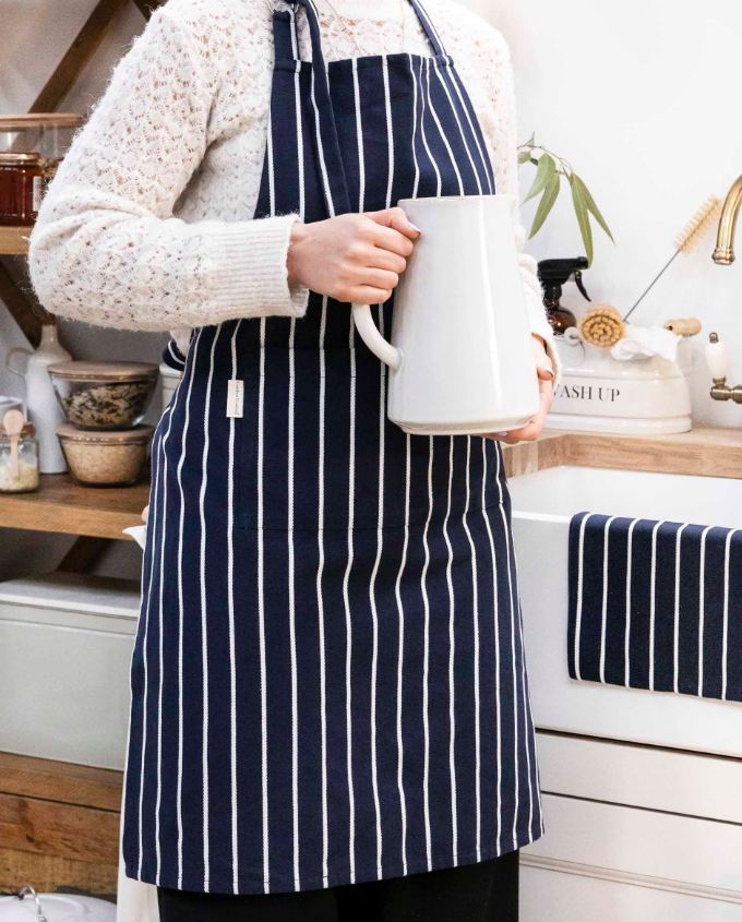 Perfect for the amateur chef, our Bampton Apron is a stylish addition to any kitchen whether hanging on a peg or being worn by the stove. This traditional cook's apron is made with 100% cotton in various colours with a Warm White stripe, and has a practical front pocket for phones, notes or anything else that needs keeping close to hand. It's easy to get the perfect fit thanks to its adjustable neck and back ties.