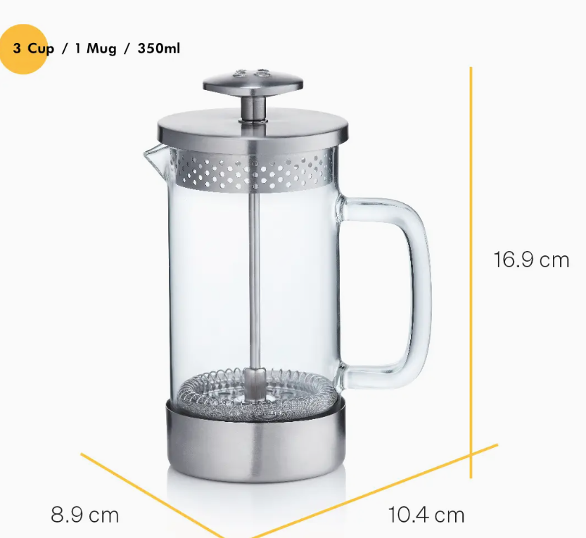 Meet the Core Coffee Press – your durable, sleek solution to a perfect brew! Available in two practical sizes, this cafetiere is designed for coffee enthusiasts who appreciate both style and substance. What makes it outstanding? It's proudly 100% plastic-free, embodying our commitment to sustainability. Designed and developed in the UK for people that love medium strength coffee, the Core Coffee Press is crafted from high-quality borosilicate glass and, you guessed it, premium stainless steel.