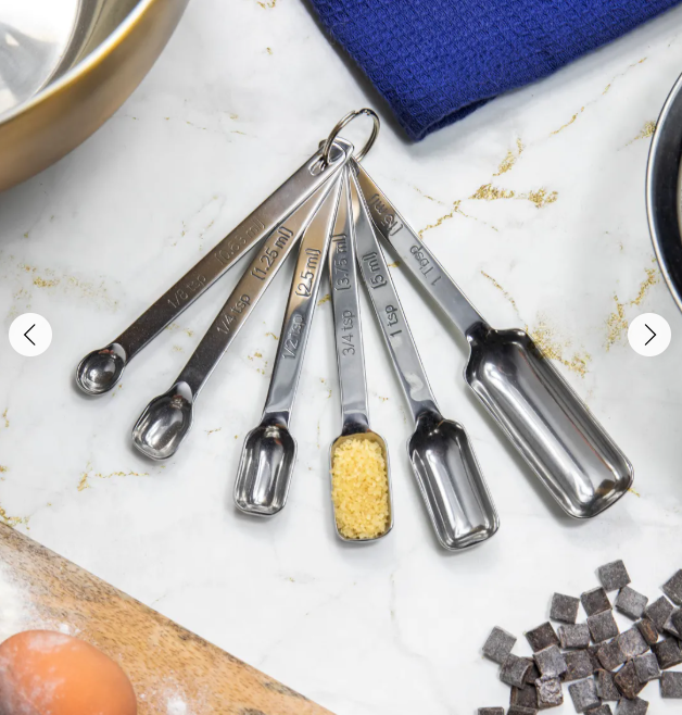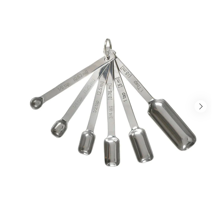 Everything you need to measure smaller dry or liquid volumes. Includes 6 measures ranging from ⅛ teaspoon to 1 tablespoon. Long rectangular design makes it easy to reach into spice pots and other awkward spaces. Durable stainless steel won't transfer tastes or odours. Dishwasher safe - 5 year guarantee.