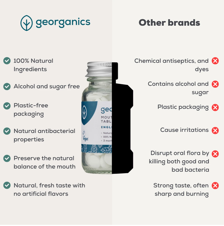 Fluoride, SLS & Glycerin Free - Our mouthwash tablets are free from fluoride, SLS, and glycerin, making them a safe and natural choice for your oral health.