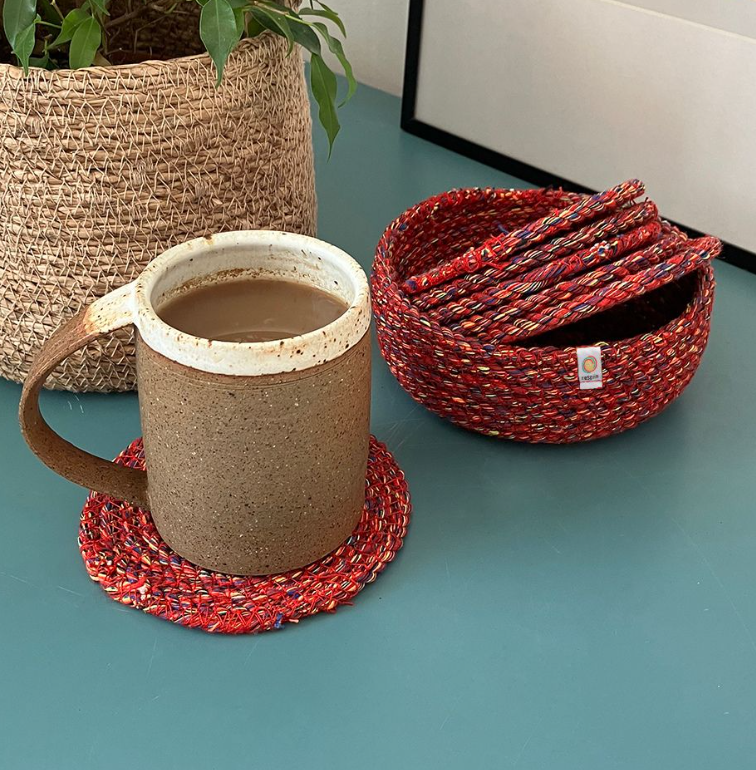 Multicoloured Recycled Cotton Coaster Set by Respiin