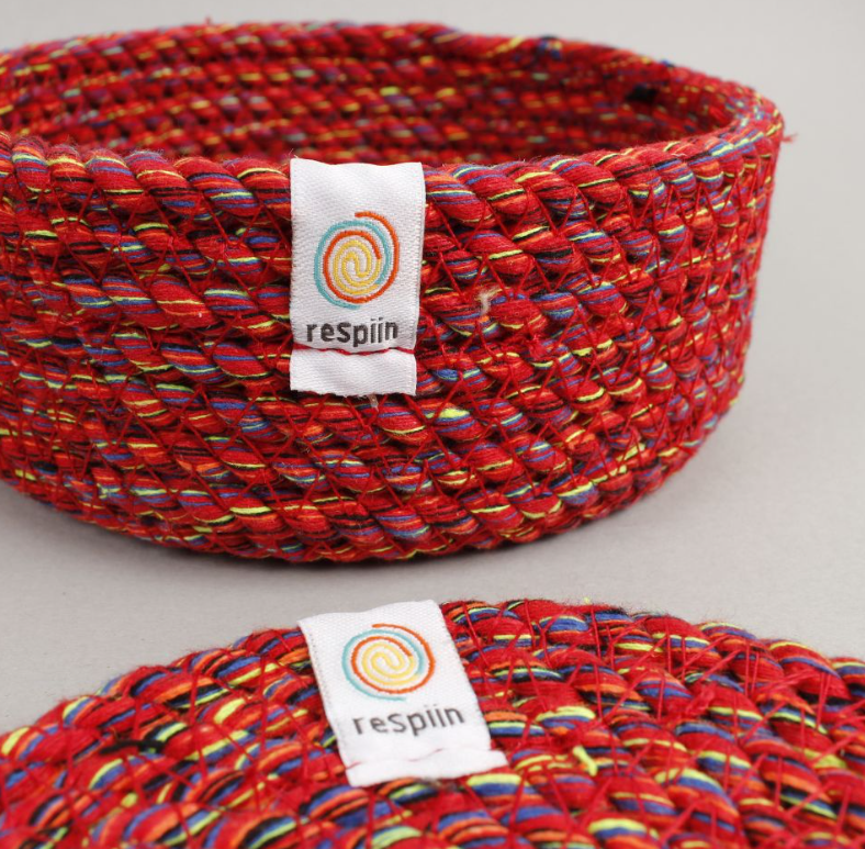 Leftover cotton thread from garment production is collected from factories. Instead of being thrown away this cotton thread is twisted into a rope and sewn together to make new products. The colours in the rope will depend on the thread colours collected so no two products will ever be exactly the same.