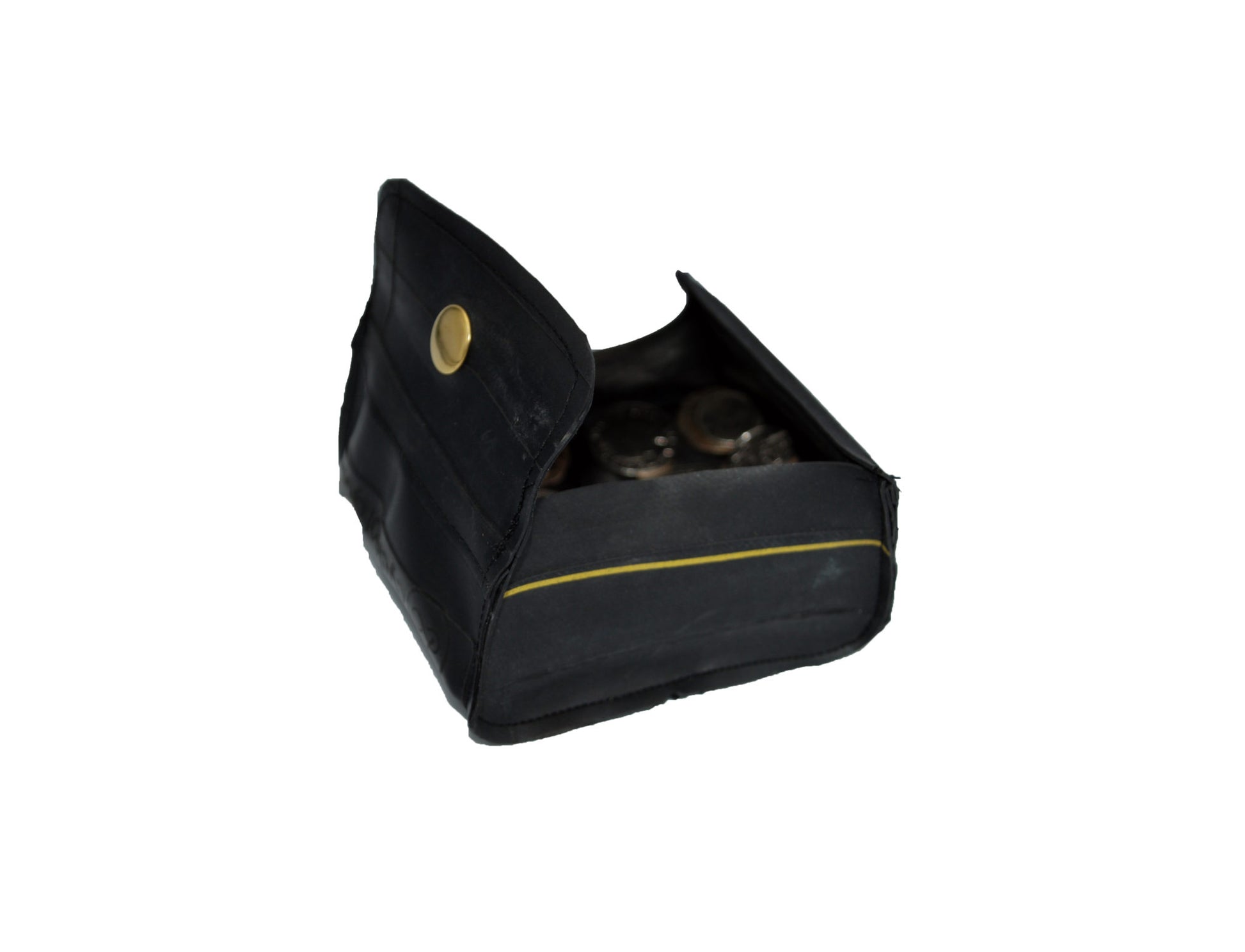 The Dzanja is made from recycled inner tube by our fairly paid tailors in Malawi. This modern take on a box purse will keep all your coins, notes and cards in one safe place.
