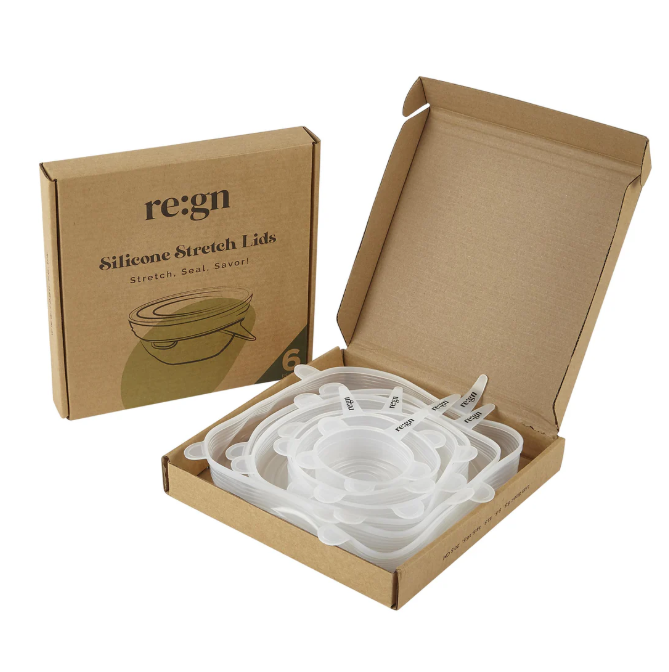 Tired of struggling with plastic wrap and searching for matching container lids? Say goodbye to those hassles and hello to the future of food storage with Re:gn Reusable Silicone Lids!