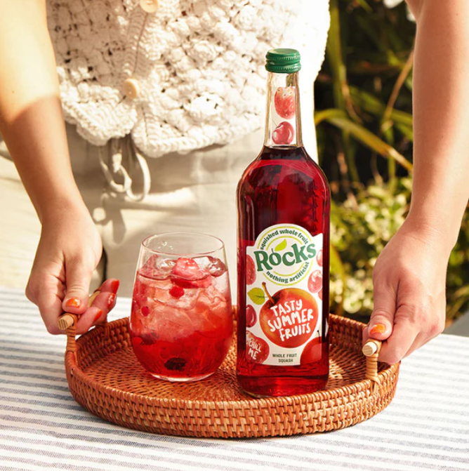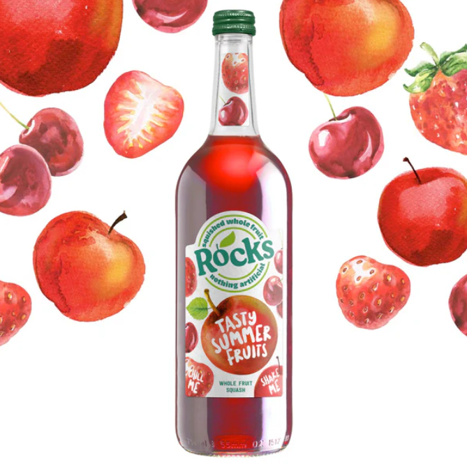 Our delicious Summer Fruits squash is made simply from squished whole summer fruits (strawberry, apple, cherry and blackcurrant), pure spring water and natural sugar.